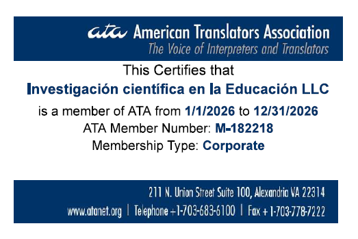 Investigación científica en la Educación LLC. 2459 SE 19th St. 33035. Homestead, Florida, USA Contáctenos: 7862084963, 7862084440.